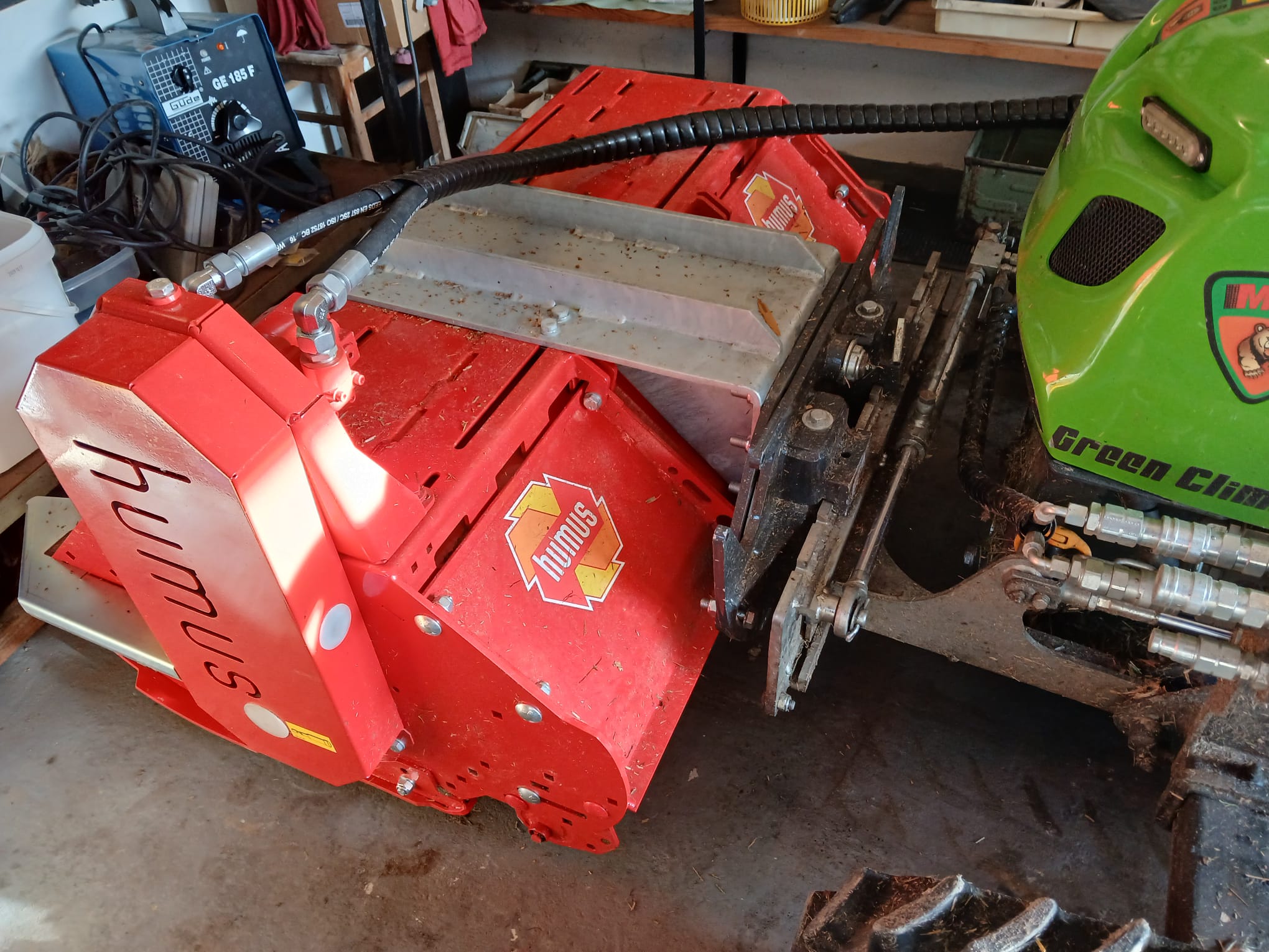 Aktuell ist die Raupe mit einem Mulchaufsatz ausgestattet. Damit mähe und mulche ich Gras, Gestrüpp und Äste bis zu 8 cm Durchmesser – effizient, kraftvoll und ideal für schwer zugängliche Flächen.